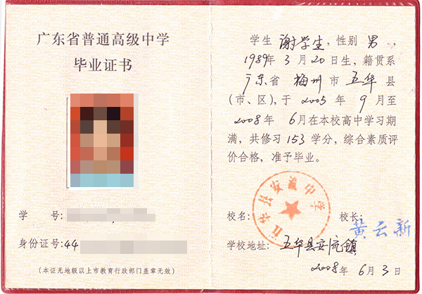 贵州省高中毕业证模板_带印章模板免费下载04-20